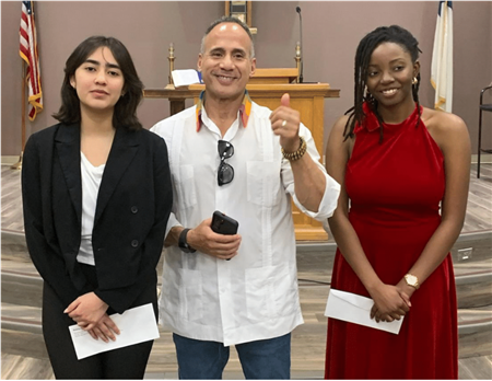 L to R: Ariel Aviti, Rtn. Gonzalo Robles (WFSWRC) and Aniyah Bascombe. Ariel and Aniyah will represent Wichita Falls area high schools in regional competition.